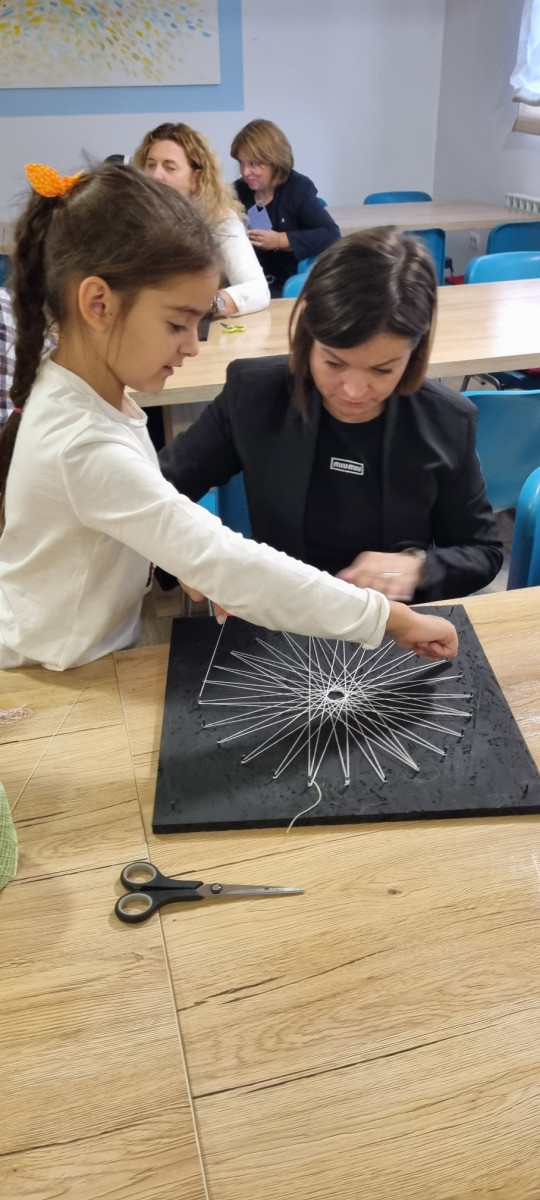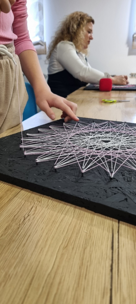 Nakon što su sudionici izradili vlastite "slike" tehnikom "String Art"koje su im ostale u trajno vlasništvo, za uspomenu, u velikoj dvorani Centra Mariapoli u Križevcima, svi zajedno izradili smo mega "čipku" promjera puna 4 metra.