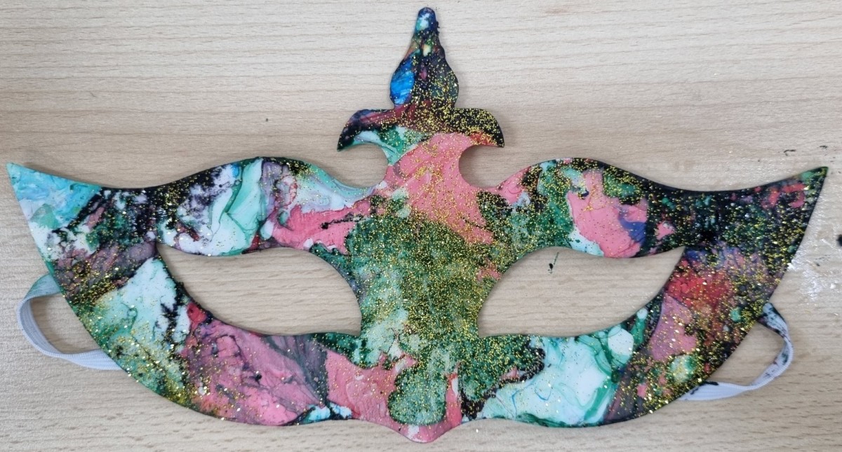 To je tehnika kojom se pomoću boja na bazi razrjeđivača bojaju razni predmeti od raznih materijala. Mi smo danas bojali maske za lice, takozvane venecijanke. U posudu s vodom sobne temperature kapaju se boje za mramoriranje po vlastitom odabiru. Potom se željenim predmetom "pokupi" sva boja s površine vode na površinu koju se želi obojati. Primjenjivo na gotovo sve, keramičke šalice, tekstil, tvrđi sjajni papir, plastika, staklo,....