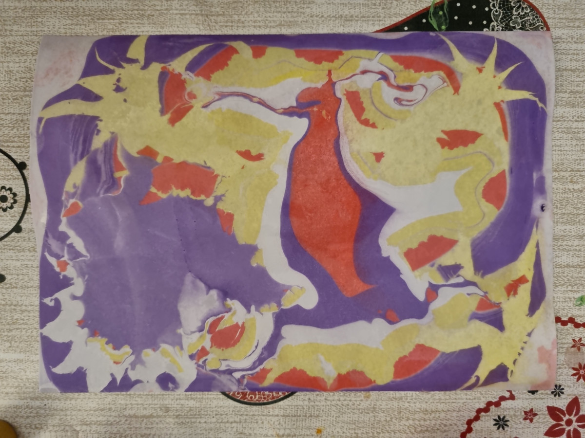 Ista tehnika može se primjeniti preslikavanjem na papir pa potom uokviriti. Bilo je šareno, veselo i jaako opuštajuće :)